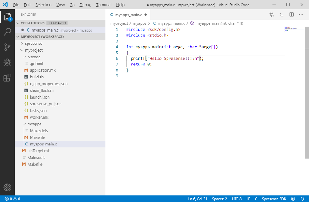 This completes the environment for developing Spresense applications on VS Code.