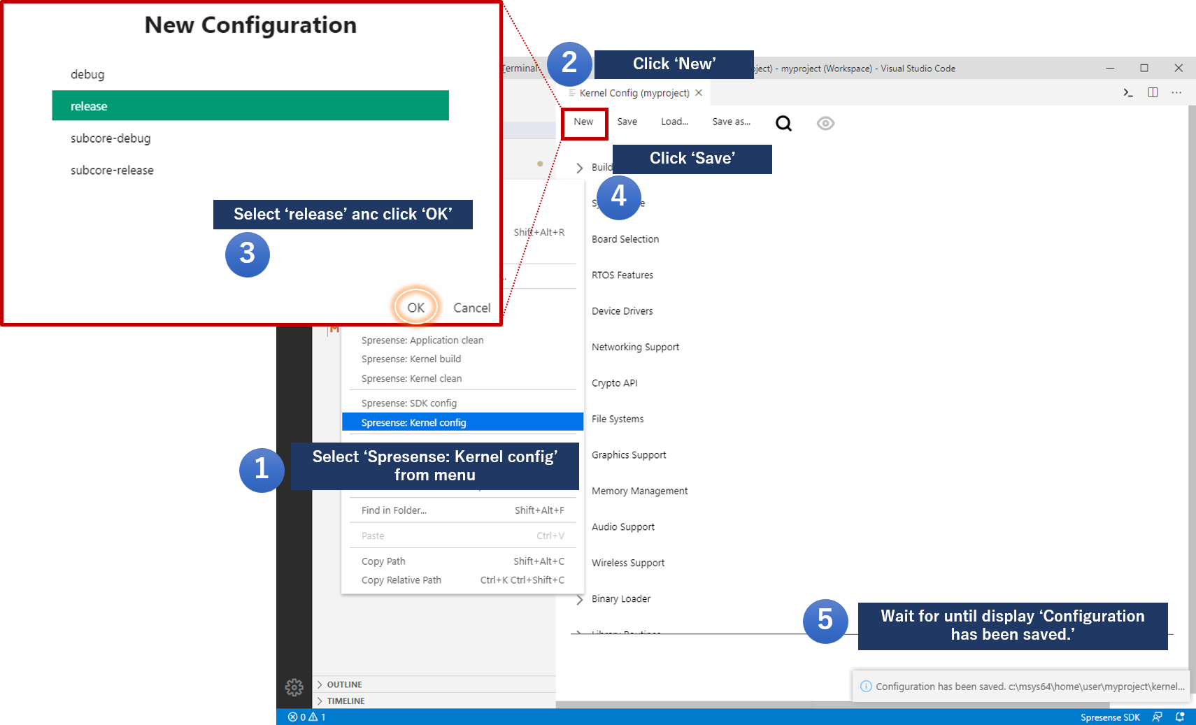 NuttXa Realtime OS used in Spresense SDK . Configure OS level settings for programs that run on Spresense.For normal use, save with the