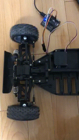 - 送ってもらったステアリングの操作情報に応じて、ステアリングサーボを