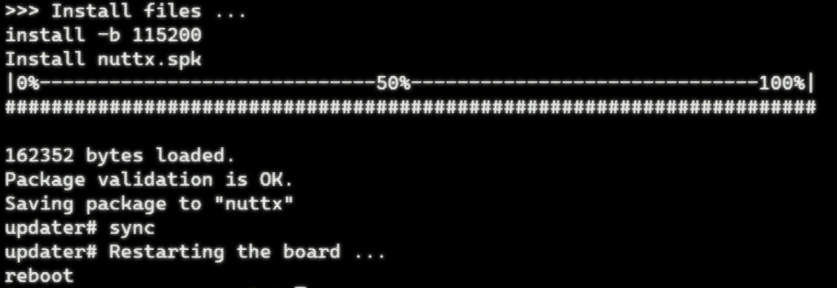 書込み完了すると以下のようなログがターミナルに表示されます。