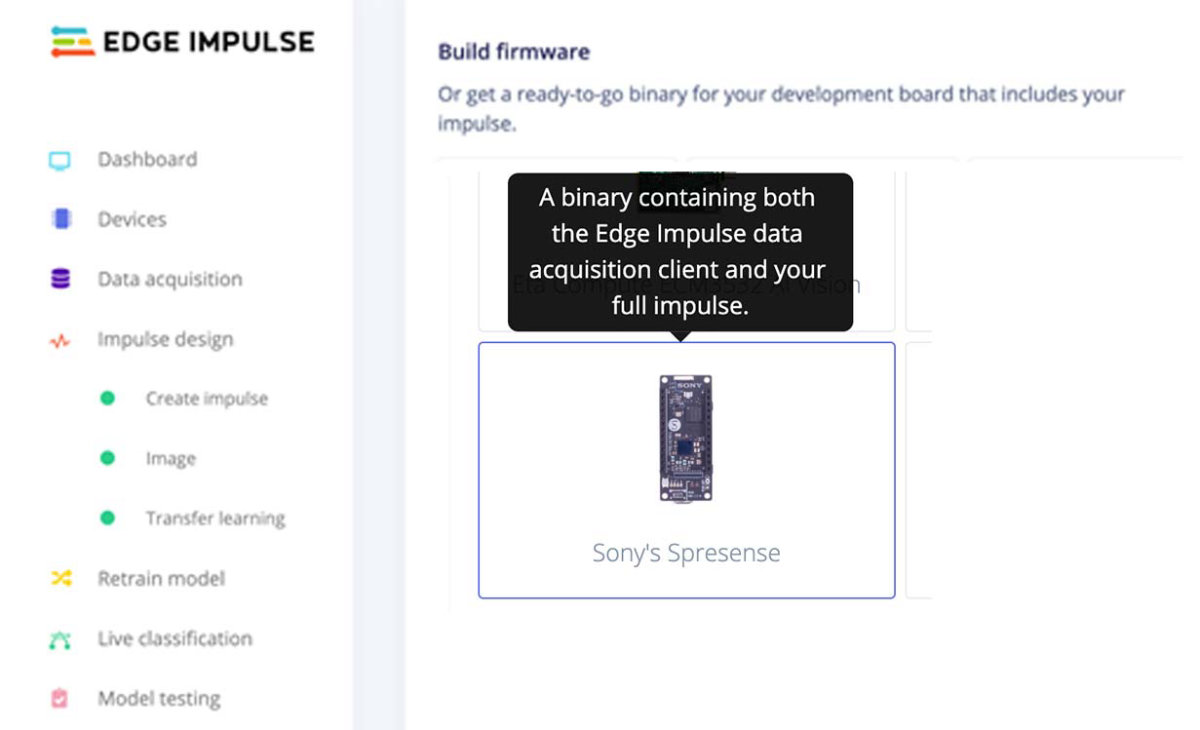 We're happy to announce that the cloud-based AI tool Edge Impulse now supports Sony's Spresense microcontroller board. It's free to start using Edge Impulse and it simplifies the work with training and deploying AI models, including the data collection. With Spresense and Edge Impulse, you get an end-to-end solution for industrial machine learning with ultra-low power consumption and high computing capability.