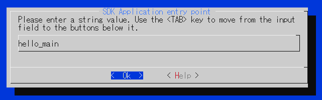 これを例えば hello_main に変更すると、起動時に hello アプリケーションを起動するように変更できます。